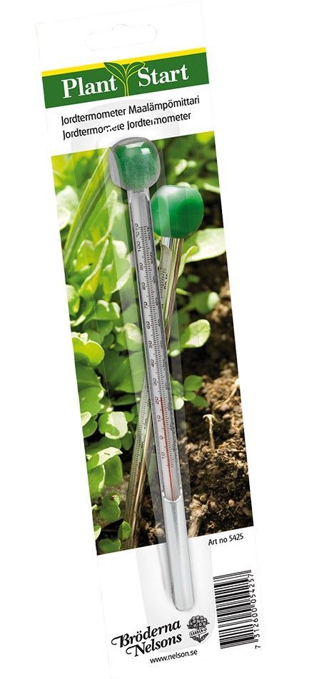 Jordtermometern hjälper dig att kontrollera jordens temperatur. Detta är speciellt viktigt vid direktsådd, t ex bönor och gurka vill ha minst 15° varmt i jorden. Mäter -10 till +100 °C.