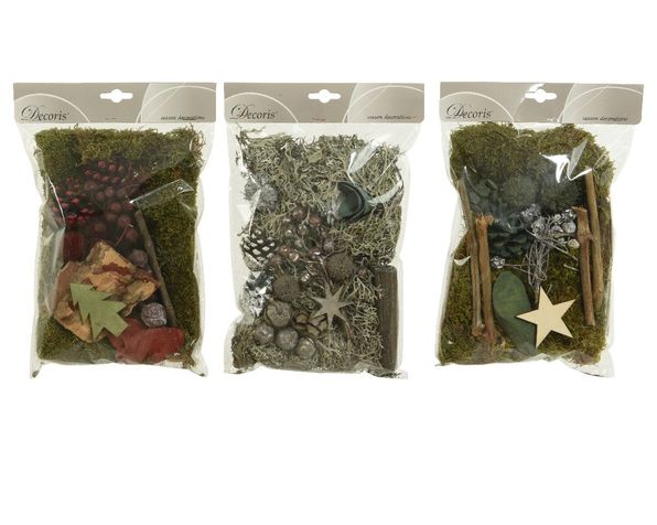Dekorationsmaterial i form av mossa, kottar m.m.Finns i 3 olika modeller.