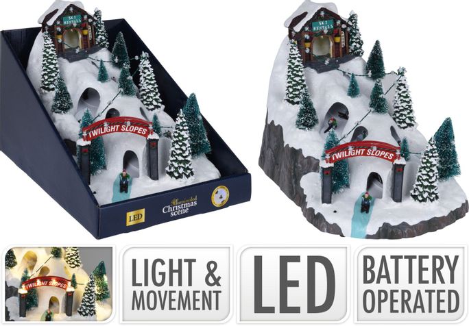 Juldekoration Skidbacke med ljus och rörelse.Batteriinformation: Drivs av 3 stycken AA-Batteri. (Ingår ej)Går även att driva med DC-adapter 4.5V 3.6W. (Ingår ej)Ange ev. önskemål om specifik modell i meddelanderuta vid utcheckning.