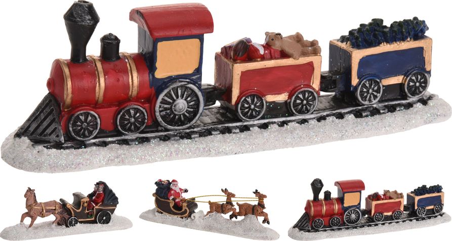 Julfigurer finns i 3 olika utförande: Tåg på räls, tomte med renar och häst med vagn.Ange ev. önskemål om specifik modell i meddelanderuta vid utcheckning.