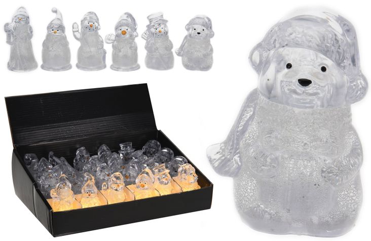 Julbelysning i form av olika julfigurer LED. Drivs av 3 stycken AG13-Batteri. (Ingår)