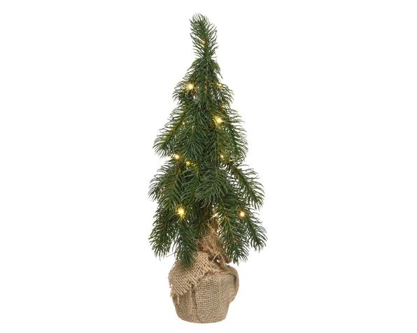 Liten julgran med LED och jutefot.