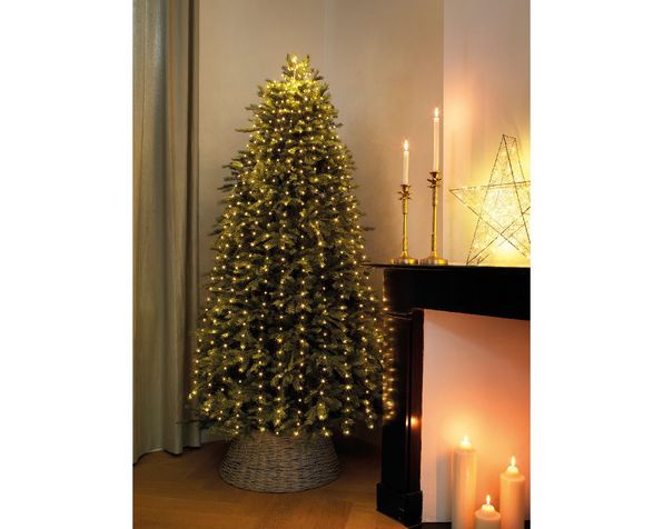 Julgransbelysning med grön kabel med 408 Micro-LED lampor som lyser med ett varmvitt sken.