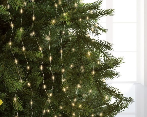 Julgransbelysning med silvrig kabel med 672 Micro-LED lampor som lyser med ett varmvitt sken