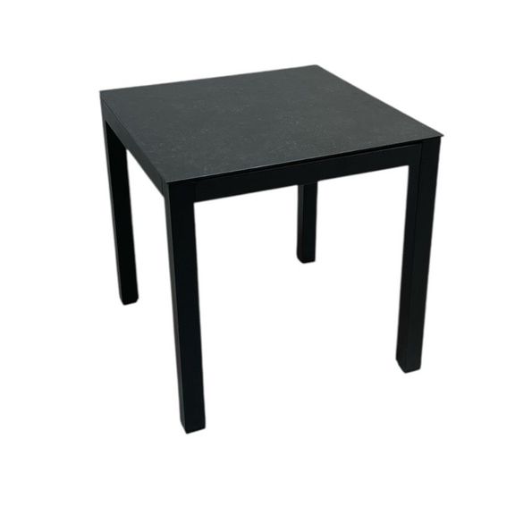 Fint sidobord tillverkad i svart pulverlackerad aluminium och en bordsskiva av 5 mm tjockt keramikglas i stenlook