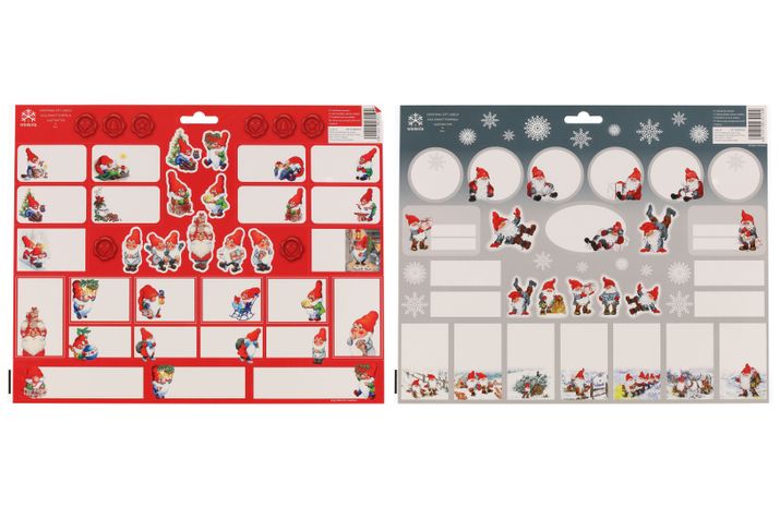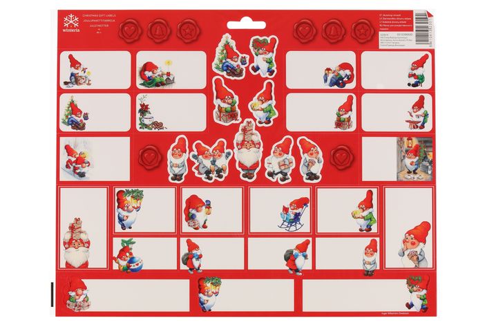 Julklappsetiketter med klister i flera olika utföranden.