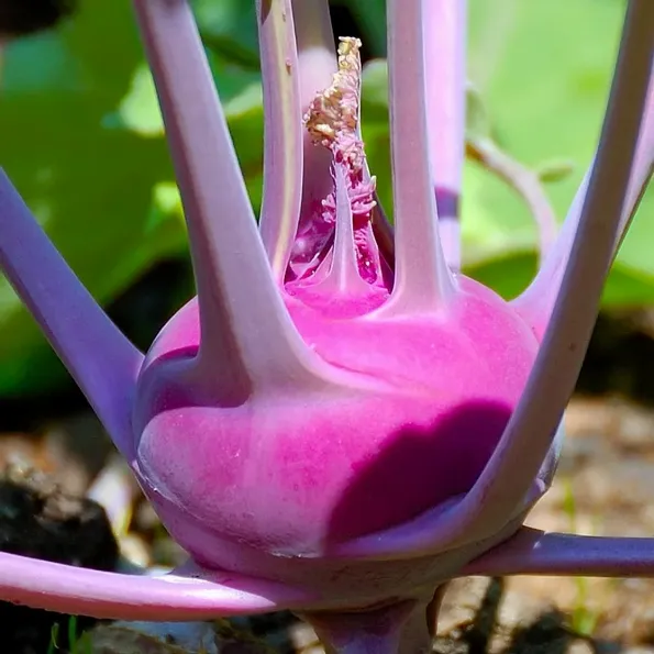 Kulturarv. Från 1851. Snabbväxande kålväxt med nedre stamdelen uppsvälld till en plattrund, blåviolett knöl. Krispigt, vitt fruktkött. Mycket vitaminrik. God färsk, ugnsbakad och wokad samt fin till dekoration.