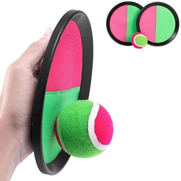 Klassiskt spel med en platta täckt med kardborre samt en tennisboll som fastnar vid kontakt. Justerbart fäste på plattan för en perfekt passform runt handen. Två plattor ingår så att två personer kan kasta bollen till varandra. Passar perfekt för både vuxna som barn!
