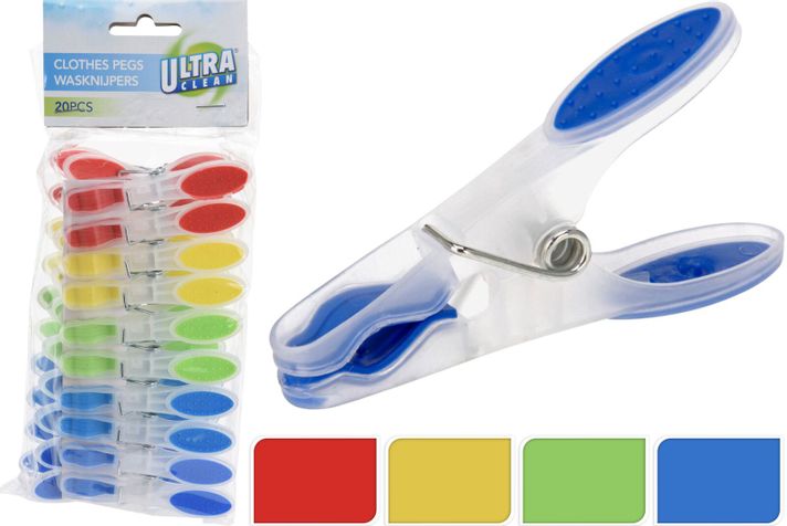 Färgglada och praktiska klädnypor som håller tvätten på plats. Perfekta för torkställningen eller tvättlinan.