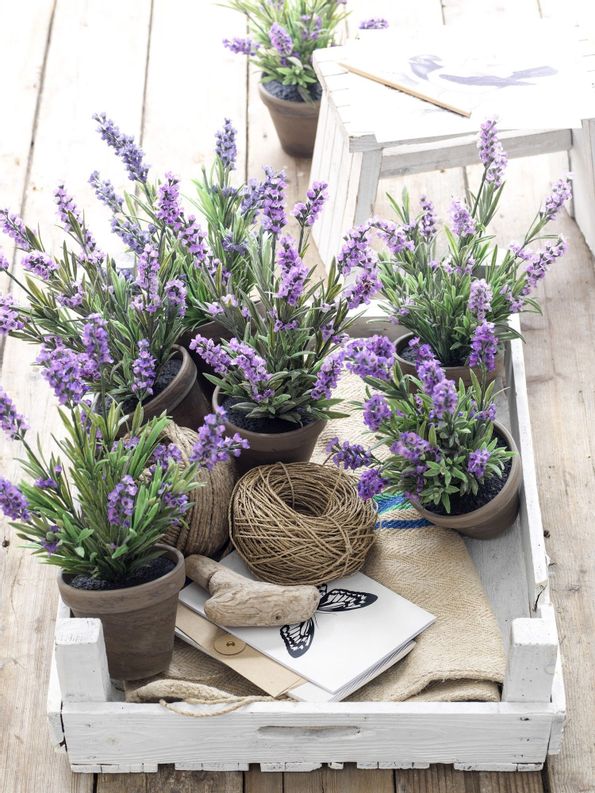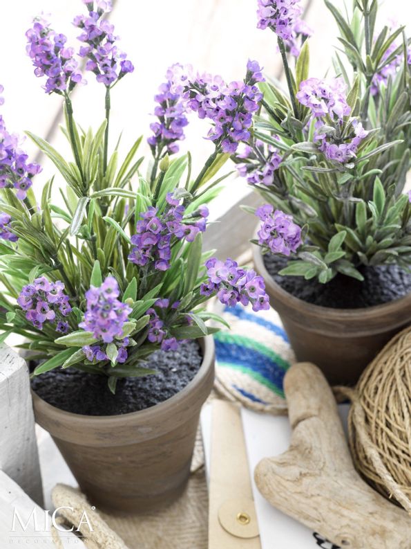 Naturtrogen Lavendel i konstmaterial, planterad i kruka.