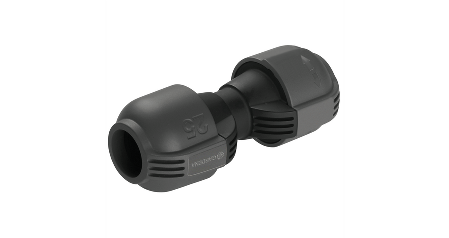 GARDENA Koppling, 25 mm – som del av GARDENA Sprinklersystem – är den enkla förlängningen av ett anslutningsrör. Den patenterade snabbkopplingstekniken gör det enkelt att, utan verktyg, montera eller demontera rör. Det är bara att vrida anslutningen 140°.