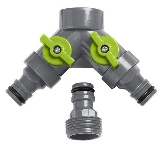 Med denna dubbla krankoppling kan du ha två slangar samtidigt.