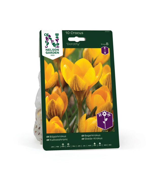 'Dorothy' är en nätt liten doftande bägarkrokus, som gärna återkommer år efter år. Blommorna är vackert gula med bruna, mörka strimmor. Lämplig sort för tidig blommning i kruka.