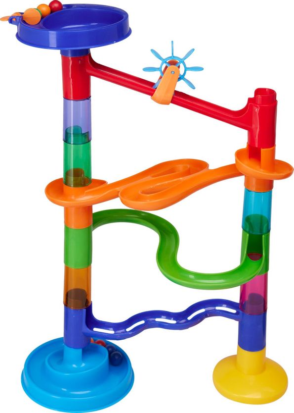Denna kulbanan bjuder in till spännande experiment med fart, rörelse och fysik. Barnen kan bygga egna banor med loopar, rutschkanor, spiraler och utforska hur kulorna rullar genom deras konstruktioner.