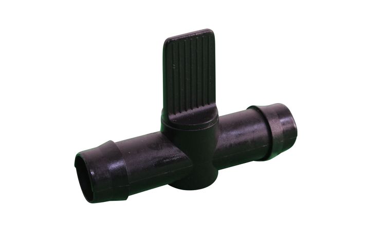 Kulventil till vattenstenspumpar. Används om trycket är för högt. Klipp bara av slangen och tryck i slangändarna på varsen sida. Reglera sedan trycket med vredet.