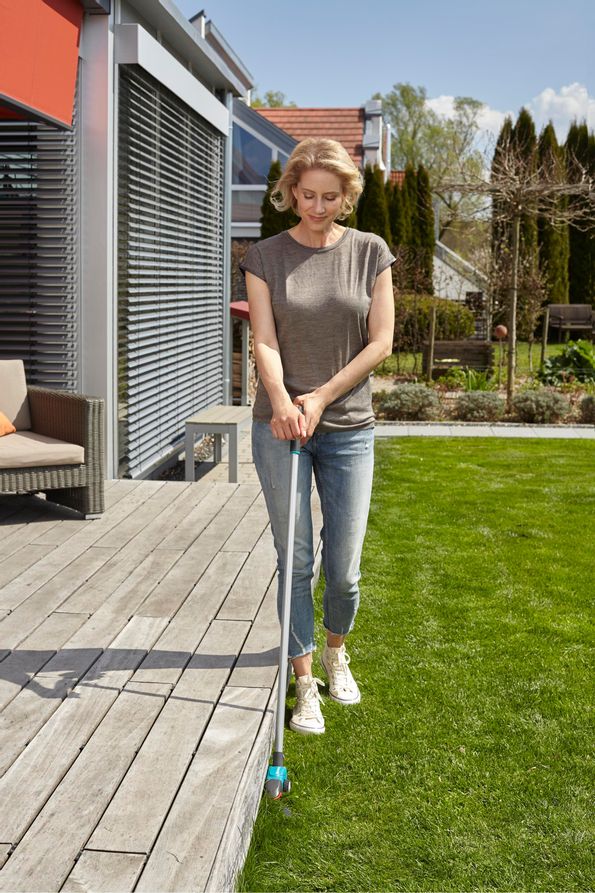 GARDENA Comfort långskaftad vridbar grässax gör det enkelt att klippa längs trädgårdens kanter. Aluminiumhandtaget är extra lätt och du kan enkelt anpassa arbetsvinkeln till din kroppsstorlek och arbetsställning. Att arbeta upprätt är bra för ryggen och de smidiga hjulen guidar saxen medan du skär. Gräsklipparen har ett ergonomiskt utformat handtag med ett handlås som gör den enkel att använda. För en exakt gräsklippning är enheten utrustad med non-stick-belagda skärblad, vilket försäkrar att så lite som möjligt fastnar på bladen.