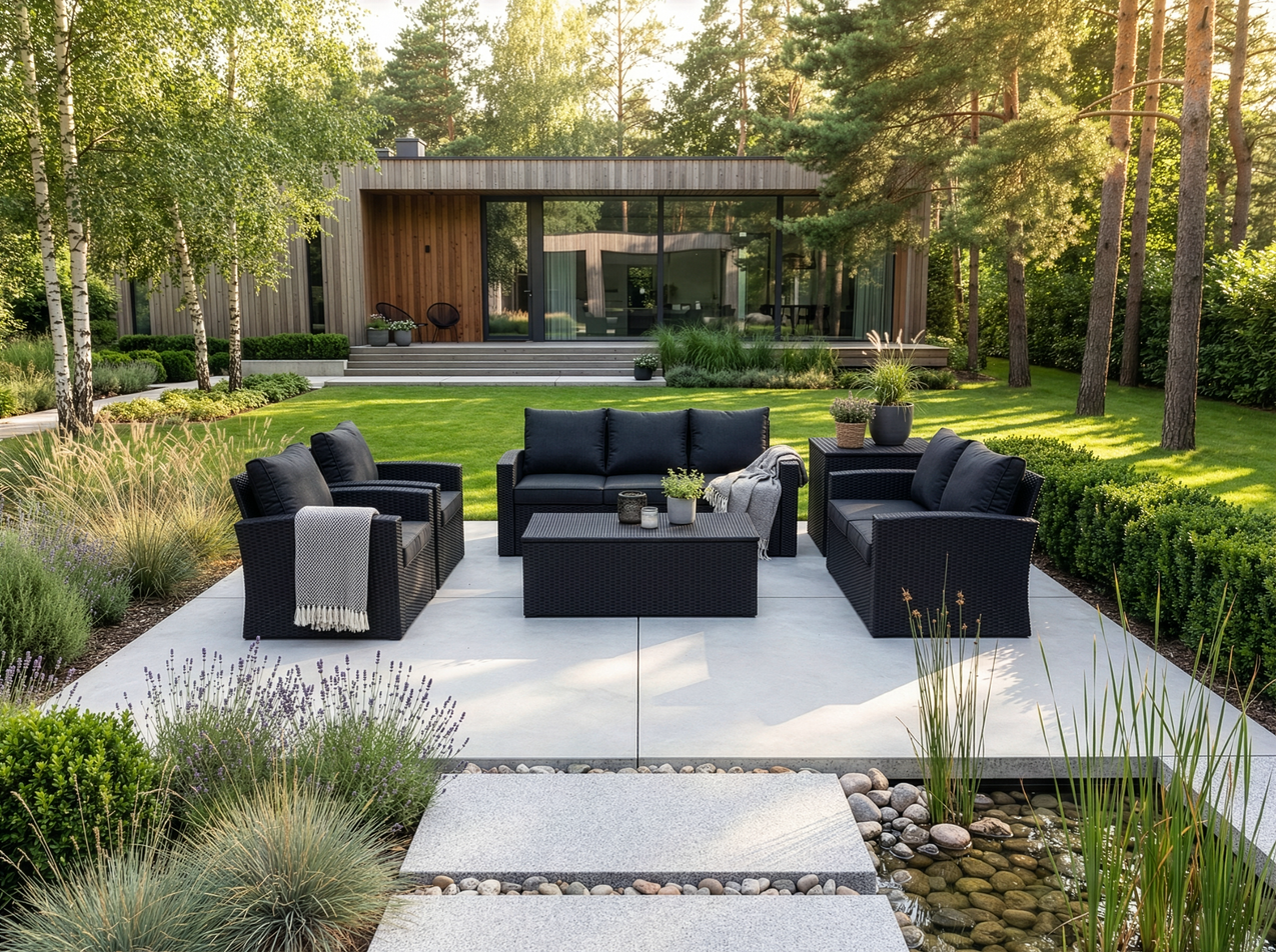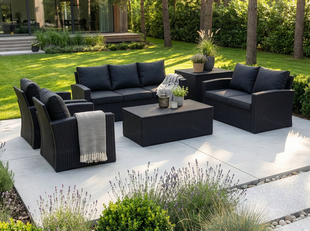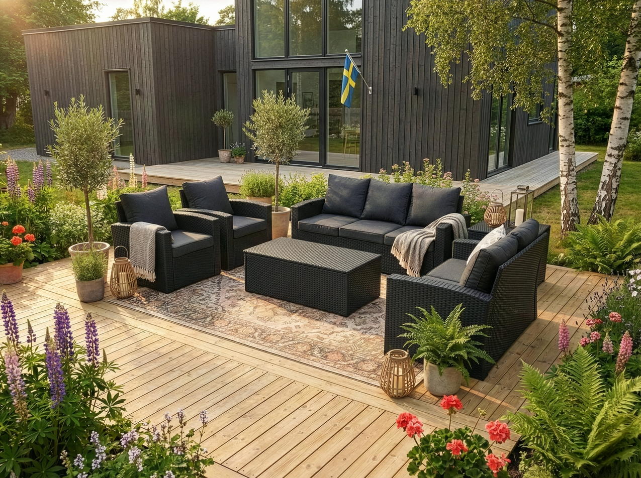 Lärke Svart Soffgrupp – Komplett loungegrupp i konstrotting