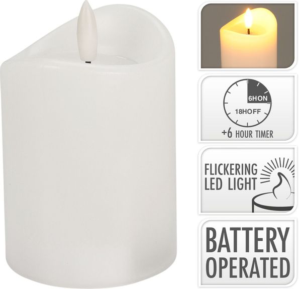 Blockljus med naturtrogen låga som lyser upp med varmvitt sken.