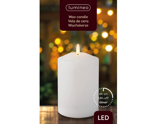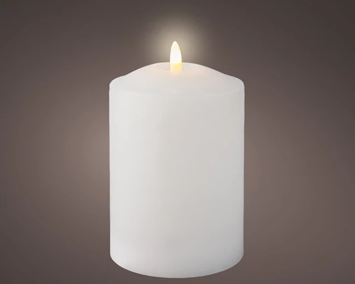 Vaxljus med naturtrogen låga som lyser upp med varmvitt sken.