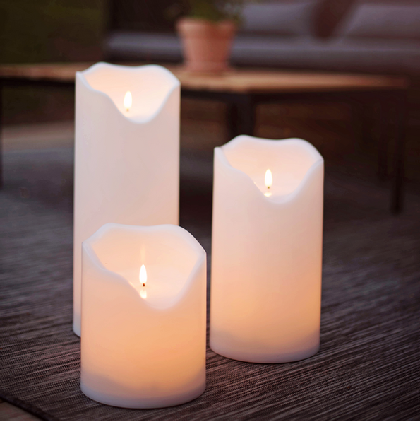 Utomhusljus i familjen Flamme. Gjord i plast. Lyser upp med varmvitt sken.