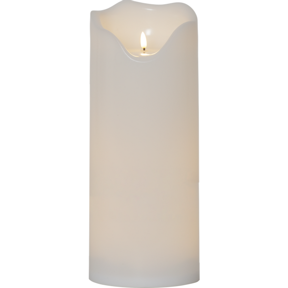 Utomhusljus i familjen Flamme. Gjord i plast. Lyser upp med varmvitt sken.