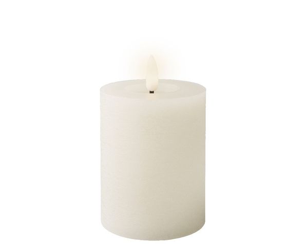 Vaxljus med naturtrogen låga som lyser upp med varmvitt sken. Ljuset har inbyggd timer.