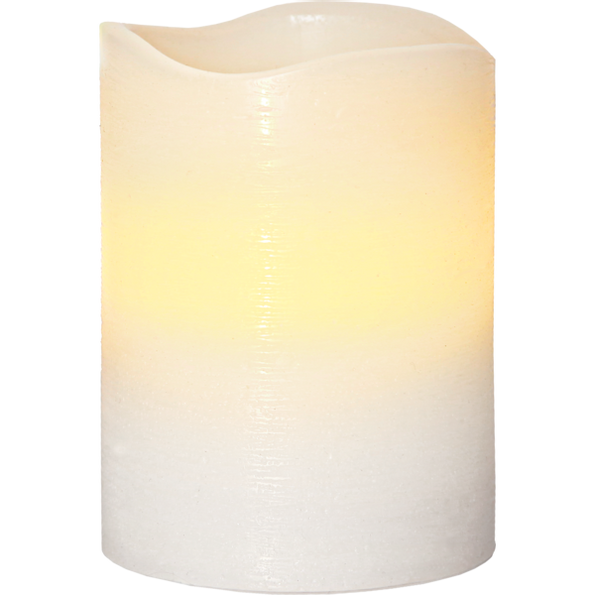 Vaxljus med en marmorerad vit yta med ett fint sken. Vaxljuset är 10cm högt och batteridrivet. Det har en timerfunktion som gör det enkelt att ställa in när ljuset ska lysa.