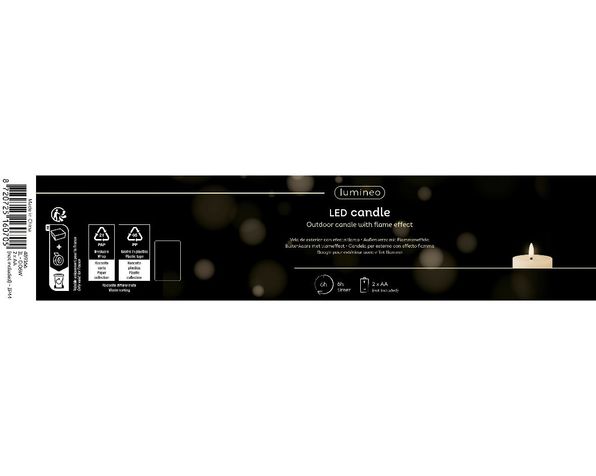 Blockljus med naturtrogen låga som lyser upp med varmvitt sken.