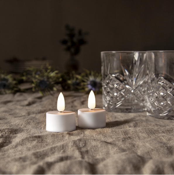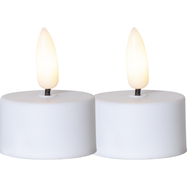 2-pack värmeljus i diameter 38 mm med varmvitt sken i våran serie Flamme.