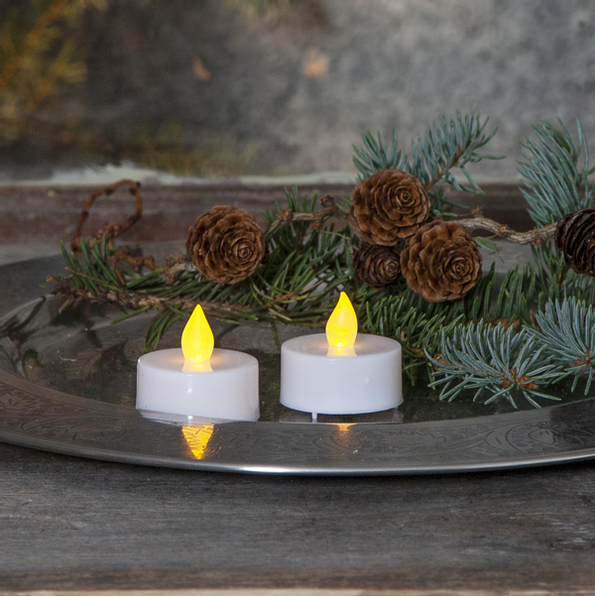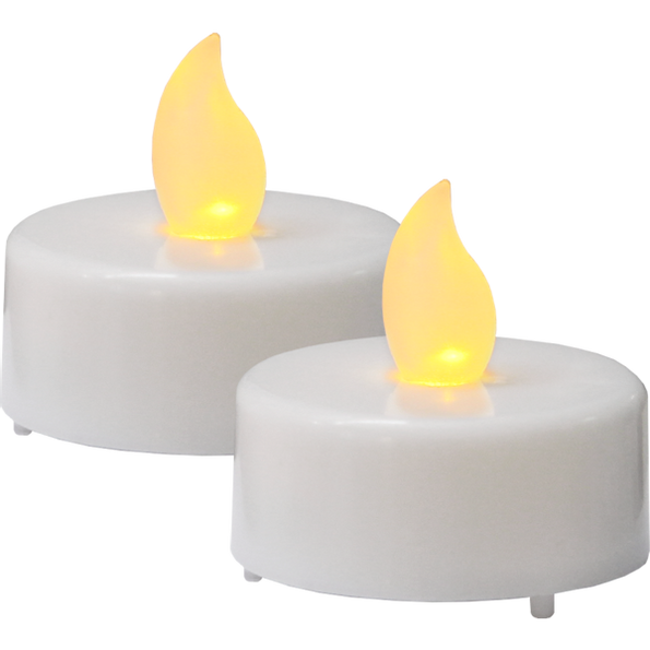 2-pack batteridrivna värmeljus i vitt. En varmgul låga som skapar en mysig tillvaro.