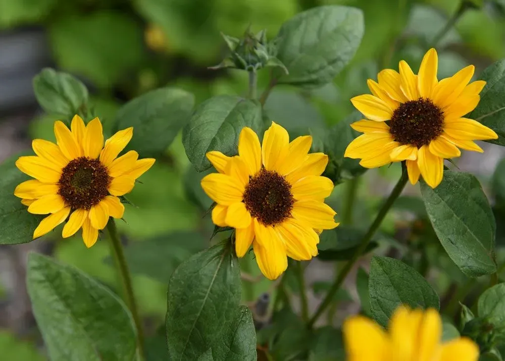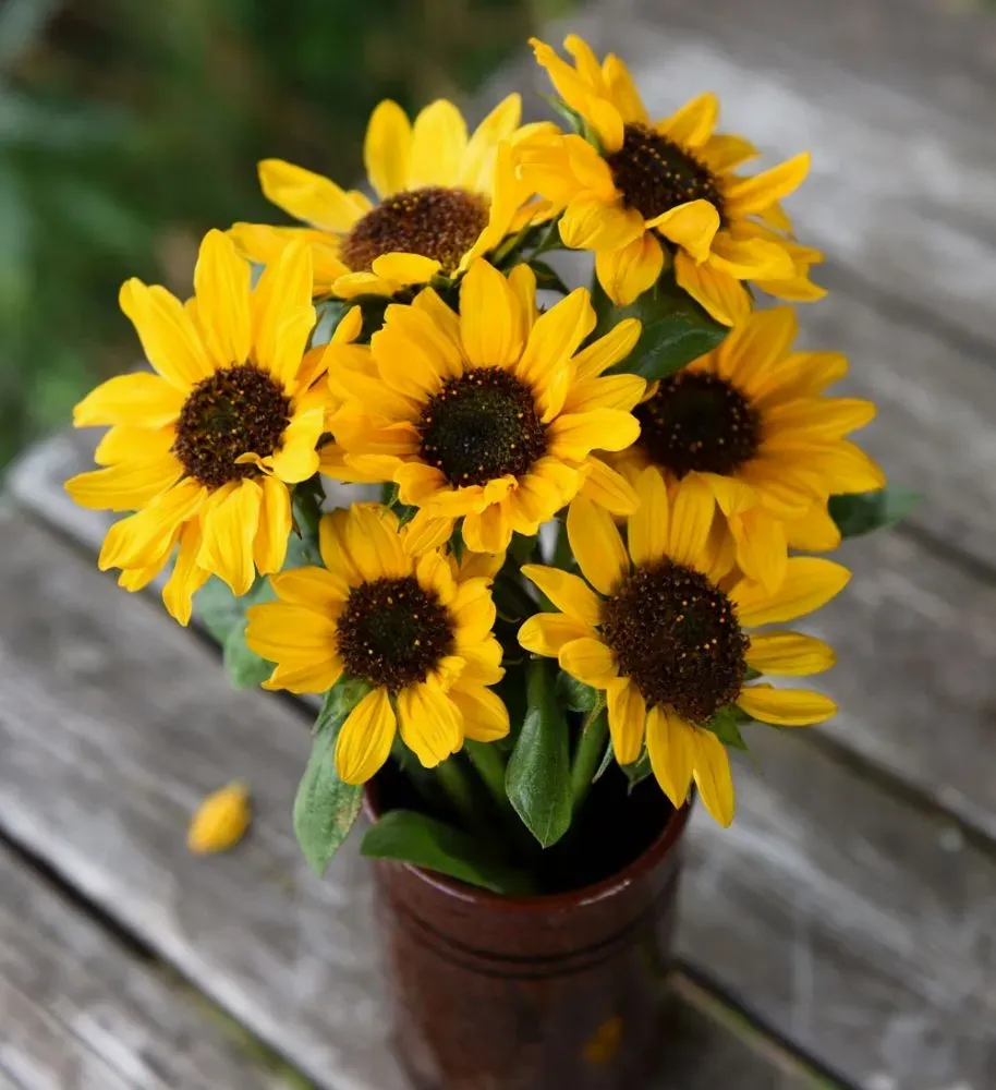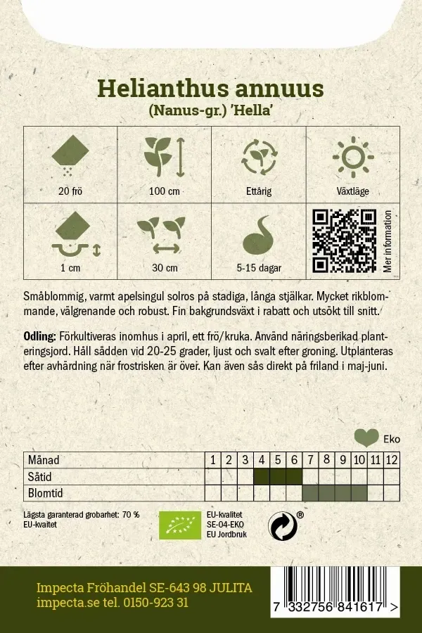 Småblommig, varmt apelsingul solros på stadiga, långa stjälkar. Mycket rikblommande, välgrenande och robust. Fin bakgrundsväxt i rabatt och utsökt till snitt.