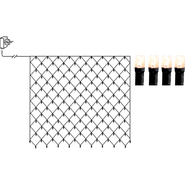Nätslinga med 200 LED lampor med vackert, lite kallare ljussken.