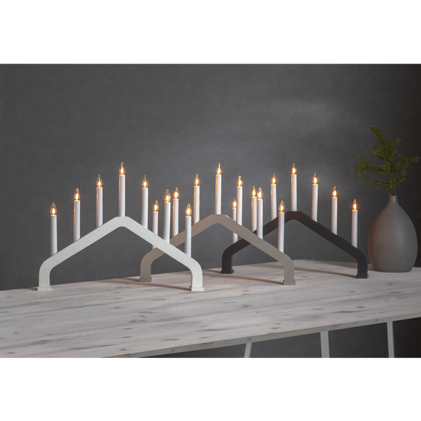 Grafit grå träljusstake i stilren och enkel form med sju ljus för inomhusbruk.
