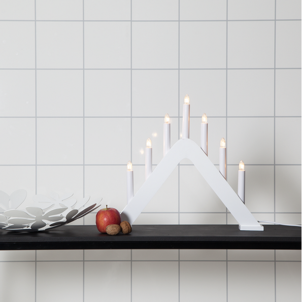 7-armad träljusstake i klassisk vit färg. Passar fint in i ett fönster för en vacker och hemtrevlig inredning.