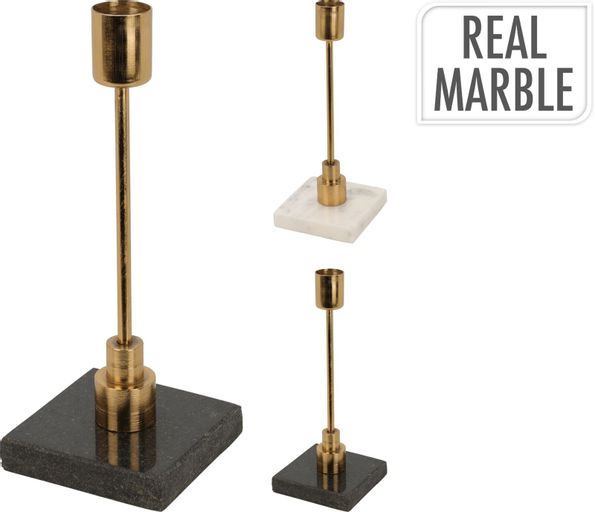 Ljusstake med fot av marmor och guldfärgad ljushållare.