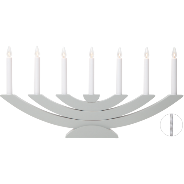 En elegant träljusstake i grå färg, adventsljusstaken har textilkabel. Placera i ett fönster eller på en skänk.