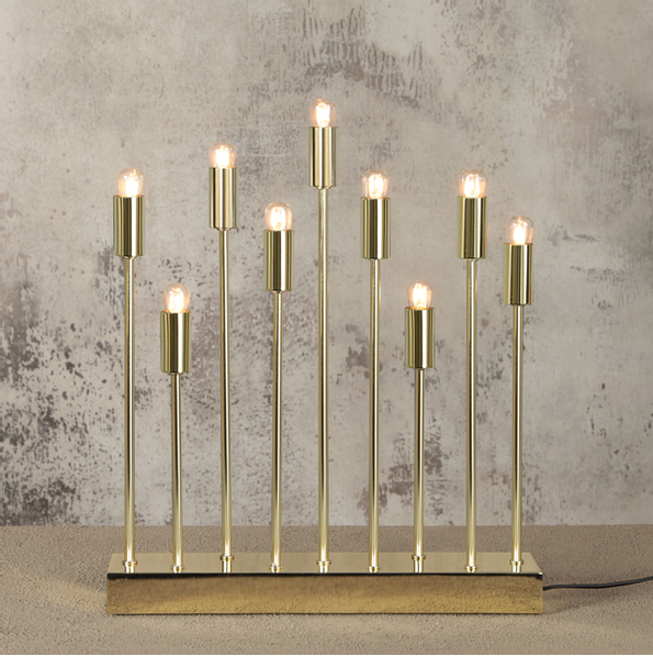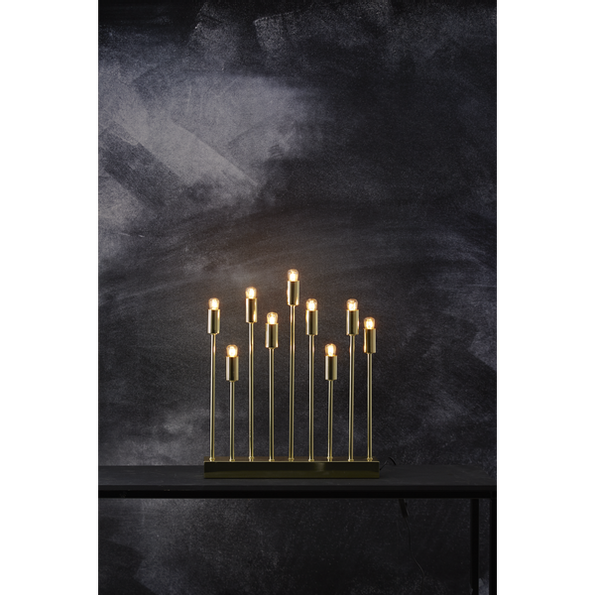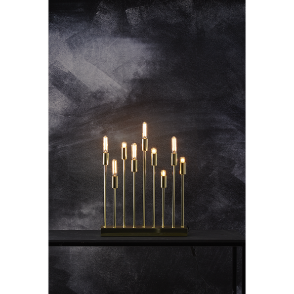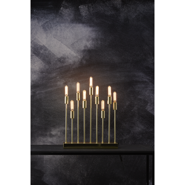Ljusstaken har plats för 9 ljuskällor. E14 sockel.