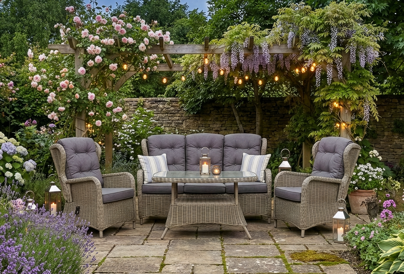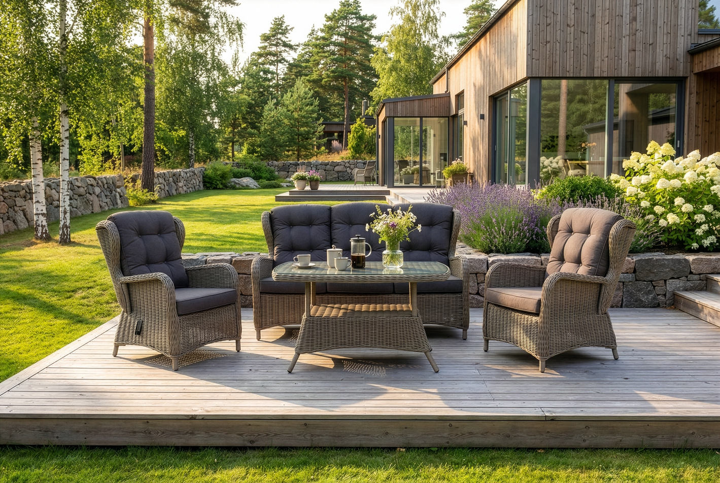 Magnolia NATUR 3-sitssoffa med olefindynor, Rottingfärg: Natur, Dynfärg: Myllvadsfärgad Olefin.
