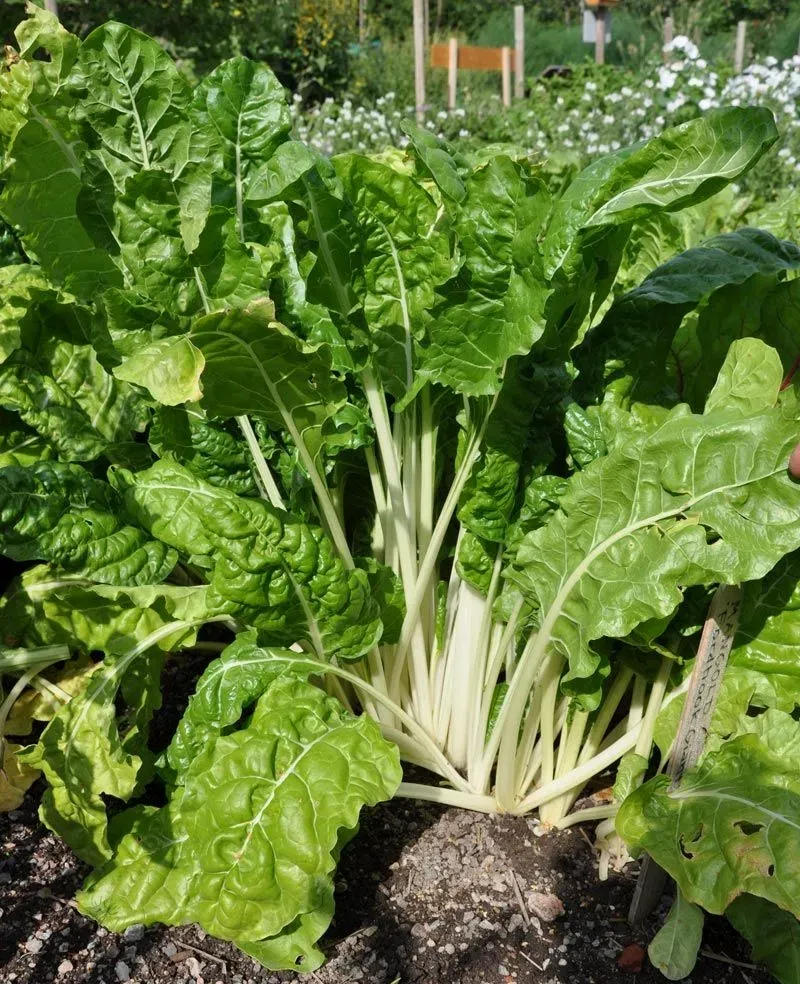 Kulturarv. Från 1750. Tidig. Starkväxande sort med mörkgröna blad och tjocka, mjälla, vita stjälkar. Odlingssäker i nordiskt klimat. Bladen används färska i sallader eller tillagade som spenat. Stjälkarna kan användas som sparris.