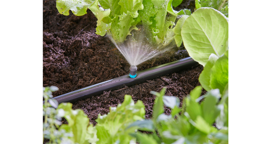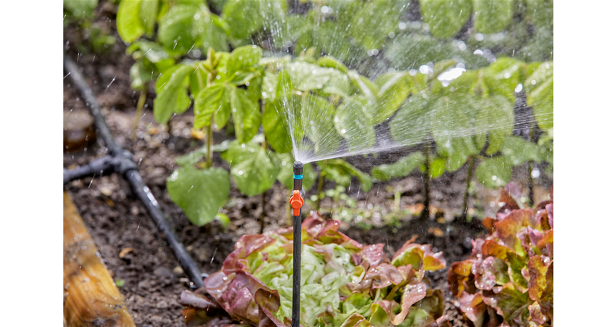 Med Micro Sprinkler 90° från GARDENA kan du vattna plantor på ett tillförlitligt sätt även i hörn och kanter av rabatten. Micro-Drip-komponenten ger dina grönsaks- och blomsterbäddar en fin sprutdimma över ett område på 90° – idealiskt från bäddens hörn. Den når en räckvidd på 2,75 m och bevattnar en total yta på 7 m². Installationen av munstycket på ett 13 mm anslutningsrör sker snabbt och enkelt med hjälp av monteringsverktyget eller genom att använda T-kopplingen för sprutmunstycken. Med förlängningsröret för sprutmunstycken (Ref.nr. 13326-20) kan du höja Micro Sprinklerns position för att bevattna högre växter uppifrån.