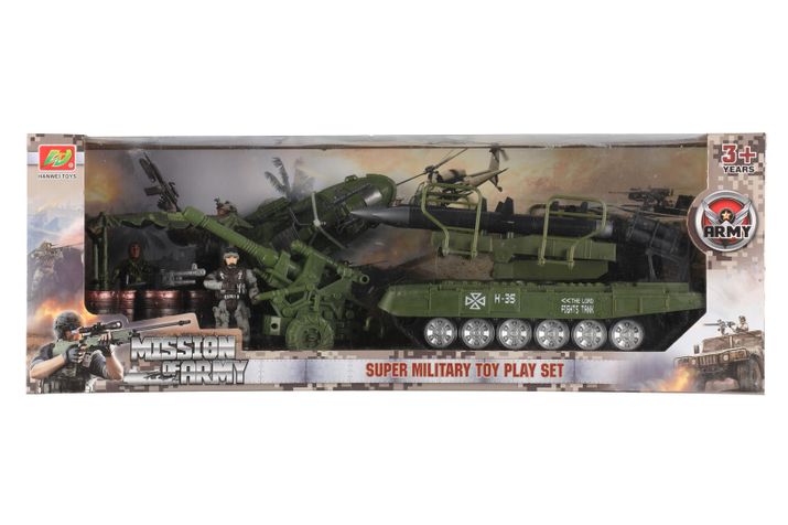 Inkluderar en tank med förstärkningsraketer, kanoner, försvarsbunker, vattenskoter, två figurer och tillbehör.