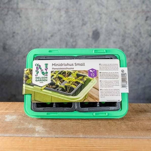 Litet minidrivhus med mått för fönsterbrädan. Används vid förodling eller drivning av sticklingar.