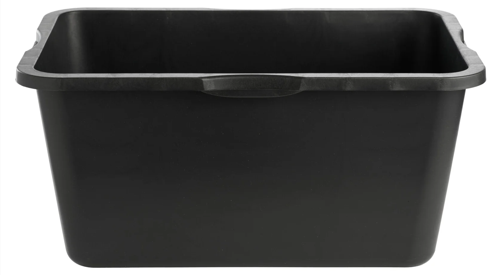 Rektangulär murbruksbalja med stark och hållbar plast och handtag i toppen.
