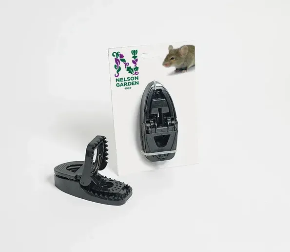 Musfälla av plast. Enkel att gillra och tömma. Enhandsgrepp.