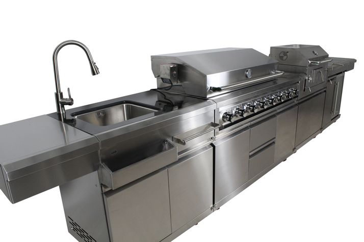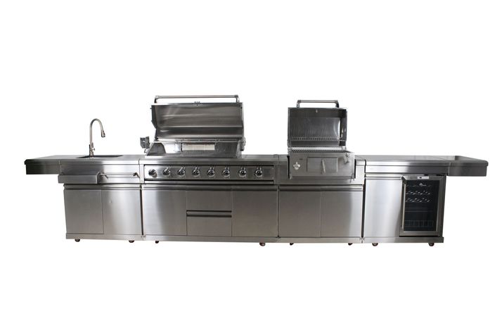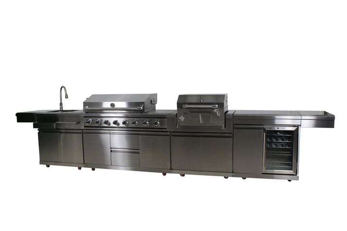 Kolgrill i lyxformat tillverkad helt av rostfrittstål dekorerad med topp av svart granit.
