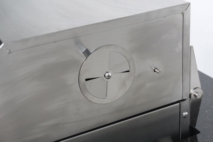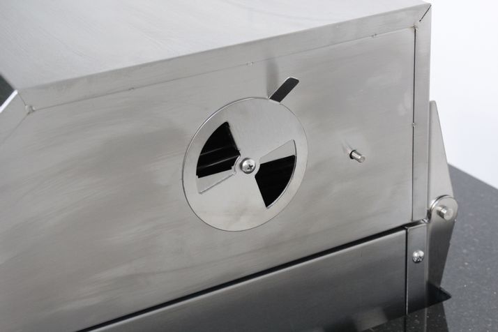 Kolgrillen är byggd med dubbla spjäll i botten och dubbla i locket för bästa cirkulation. Kolbädden är höj och sänkbar med hjälp av vredet på högersida.