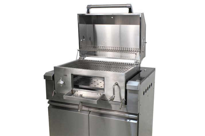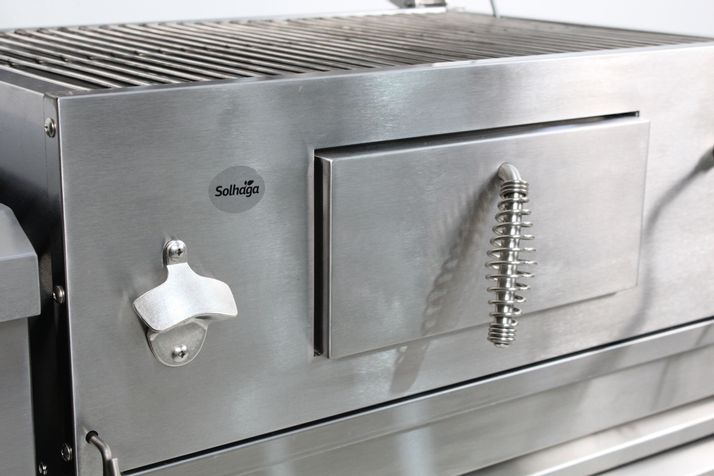 Kolgrillen är utrustad med en lucka på framsidan för att enkelt kunna rengöra och finfördela kolen.