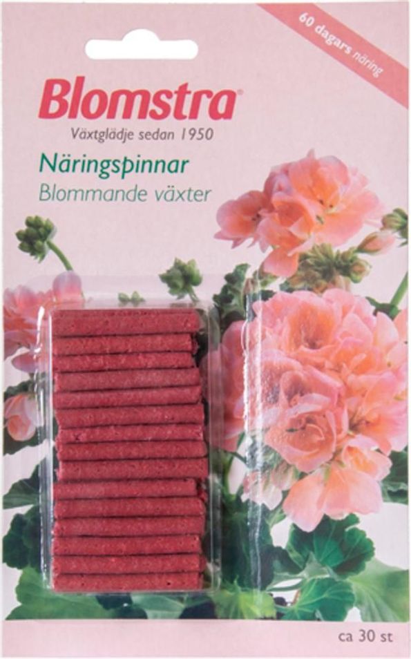 Blomstra näringspinnar ger dina blommande krukväxter all växtnäring de behöver för ett längre och friskare liv. Mineraler, spårämnen och näringsämnen doseras i exakta proportioner. Enkla och bekväma att använda. Det enda du behöver göra är att sticka ner hela näringspinnen i jorden mellan växten och krukans kant. Blomstra Näringspinnar avger sedan rätt näringsmängd varje gång du vattnar under ca 60 dagar.