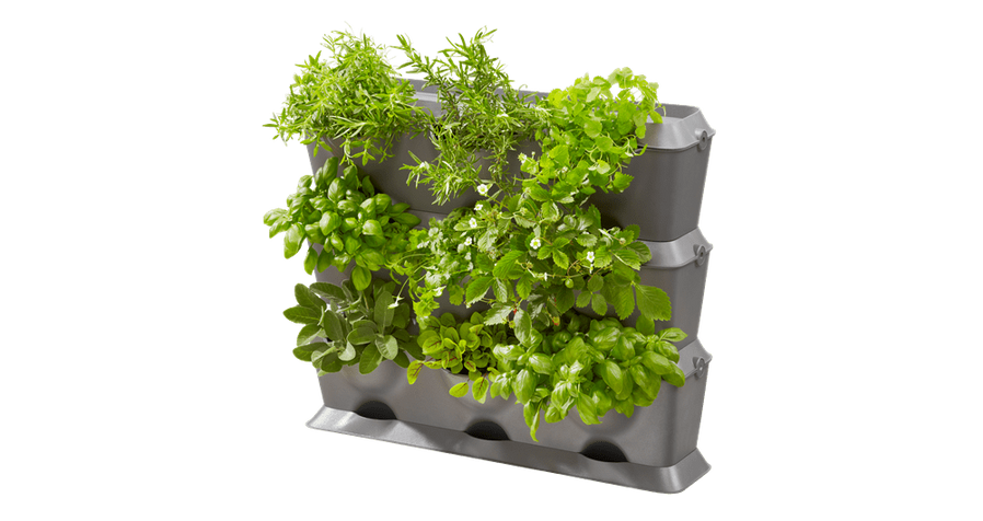 GARDENA Nature Up! Grundpaket för vertikala växthållare är ett flexibelt system för att på ett mycket enkelt sätt skapa en grön vägg av blommor, örter och grönsaksodlingar. Delarna byggs enkelt ihop och kan utökas utan verktyg och är gjorda av vädertålig kvalitetsplast. Växthållarna kan antingen stå direkt på marken eller hängas på vägg.