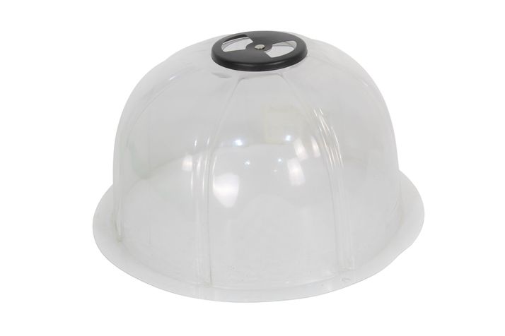 Odlingsklockan är perfekt för att skydda växter mot frost. Den bevarar värmen så att plantan kan ta del av den och leder samtidigt ner regnvatten i jorden runt omkring. Har ett vred för att styra ventilation och värme. Mått: Ø 32×17 cm